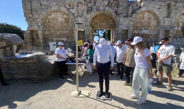 3-9 Eylül Halk Sağlığı Haftası kapsamında Antalya'nın Aksu ilçesinde yer alan Perge Antik Kenti'nde farkındalık etkinliği düzenlendi. Etkinlikte rehber eşliğinde antik kentin tanıtımı yapılırken, katılımcıların boy, kilo ve tansiyon ölçümleri gerçekleştirildi, ardından yürüyüş yapıldı.