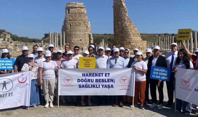 Antalya'nın Aksu ilçesindeki Perge Antik Kenti, Halk Sağlığı Haftası kapsamında düzenlenen farkındalık etkinliğine ev sahipliği yaptı. Katılımcıların rehber eşliğinde tarihi alanı gezdiği programda boy, kilo ve tansiyon ölçümleri yapıldı, sağlıklı yaşamın önemine dikkat çekmek amacıyla yürüyüş gerçekleştirildi. Sağlık Bakanlığı ve Antalya İl Sağlık Müdürlüğü'nün hazırladığı pankartların taşındığı etkinlik, müzik dinletisiyle son buldu.