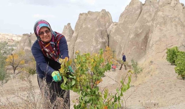Balon turlarının her sabah gökyüzünü renklendirdiği bölgede, Peribacaları'nın arasında dikilen ağaçlar hem doğaya hem de görsel güzelliğe katkı sağlıyor. Lütfü Höke ve eşi, diktikleri fidanların bakımını da özenle yapıyor.