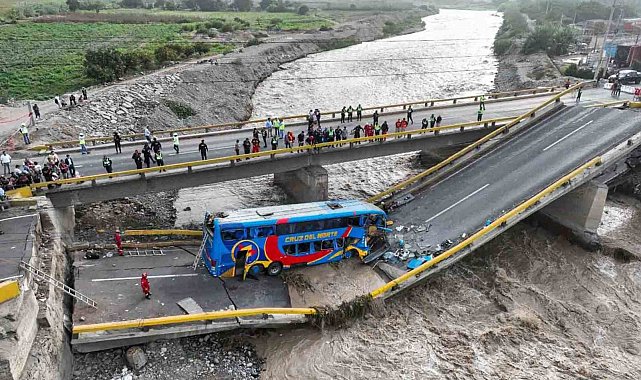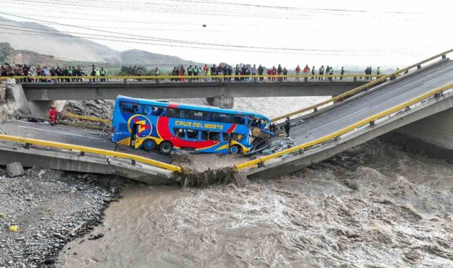 Güney Amerika ülkesi Peru'nun kuzeyinde Panamerikan kara yolunda bulunan 60 metre uzunluğundaki bir köprü çöktü. Facia sırasında köprüden geçen ve 50'den fazla yolcunun bulunduğu iki katlı otobüs ve bir otomobil nehre düştü. Bölgeye kurtarma ve sağlık ekipleri sevk edildi. Çalışmalarda otobüs şoförü ve 1 yolcunun cansız bedenine ulaşıldı, 41 kişi ise hastaneye kaldırıldı. Kuzeydeki liman kenti Chimbote'den yola çıkan otobüs, başkent Lima'ya gidiyordu.