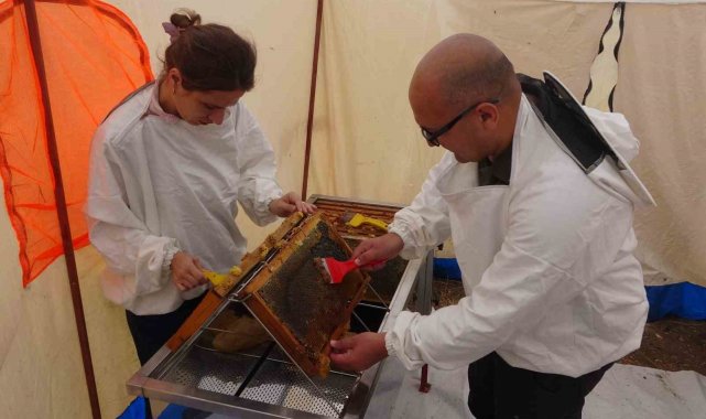 Eşiyle birlikte arıcılık yapan Gökçe Çay'da bu yılın son bal hasadını gerçekleştirdiklerini, kendisinin de sağım işlemi yaparak en doğal haliyle tüketiciye ulaştırdıklarını kaydetti.