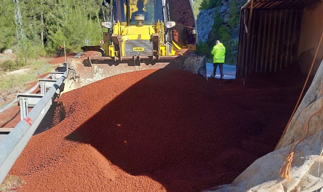 Peyzaj malzemesi yüklü tır devrildi