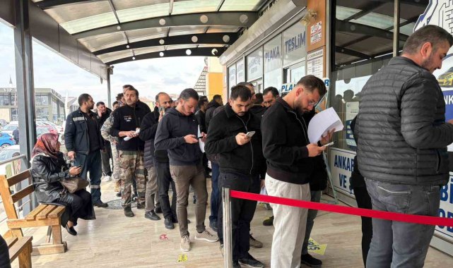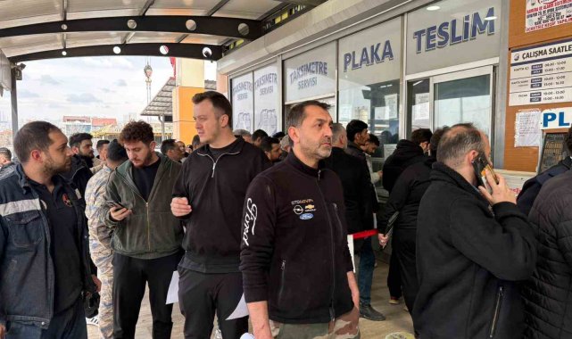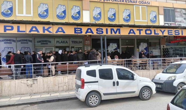 Plakasının yazı sitili standartlara aykırı olan sürücüler ceza yememek için plaka basım atölyesinde uzun kuyruklar oluşturdu