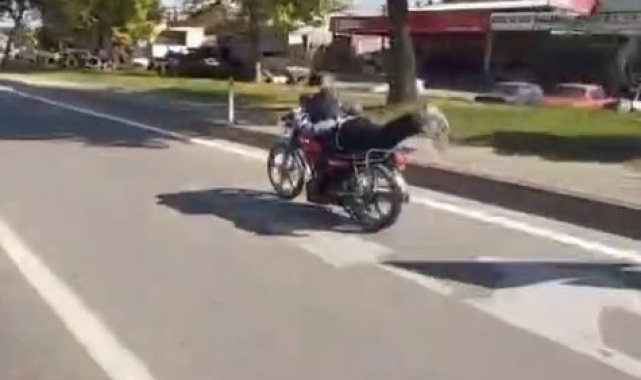 Görüntülerde, sürücünün hiçbir koruyucu ekipman kullanmadığı, motosikletin plakasız olduğu ve kontrolsüz bir şekilde motosiklet üzerinde yatarak yol aldığı açıkça görülüyor.