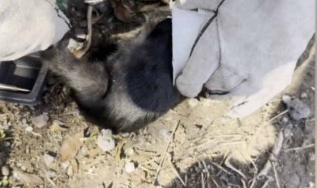 Plastik kapağa sıkışan yavru kedi kurtarıldı