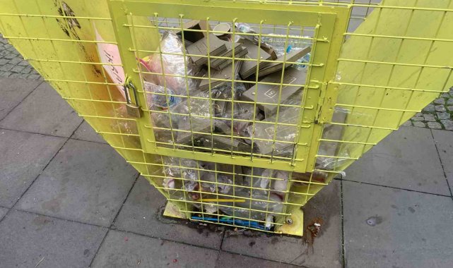 Plastik şişeler için kurulan geri dönüşüm kafesi çöplerle dolduruldu