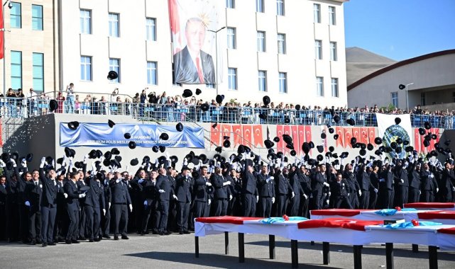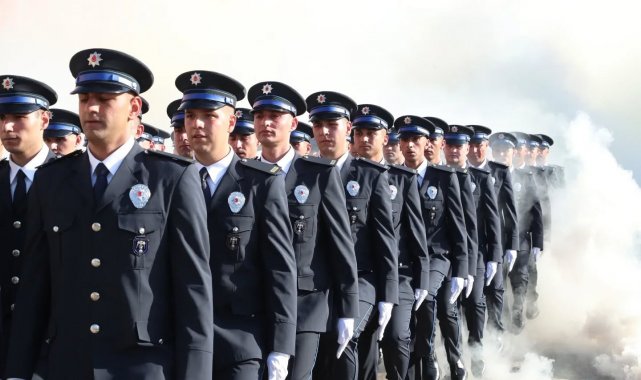 Polis adayları yemin ettikten sonra renkli sisler arasında bayrak yürüyüşü yapıp kep attı, arkadaşları ve aileleriyle kucaklaşarak sevinçlerini paylaştı.
