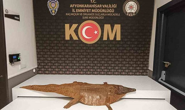Afyonkarahisar'da polis tarafından şüphe üzerine durdurulan bir araçta timsah derisi ele geçirildi.