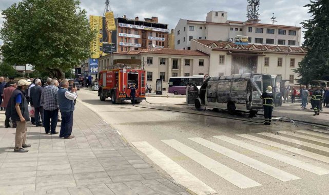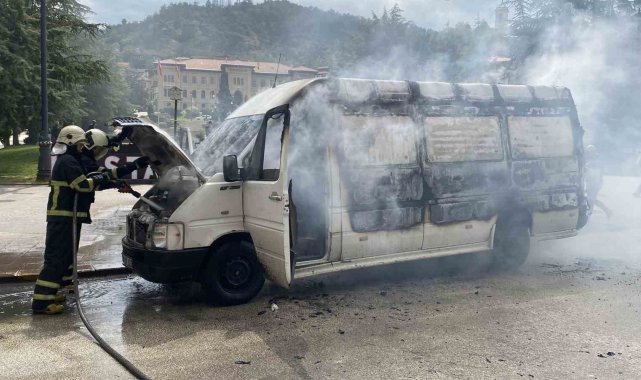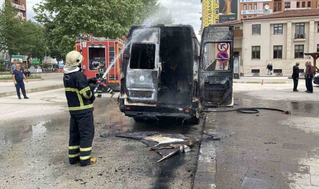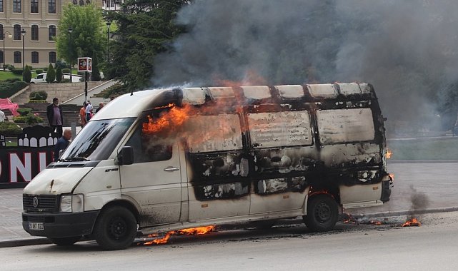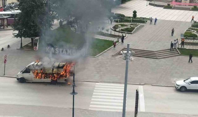 Kastamonu'da bir sürücü, polis ekibinin işlem yapmak istediği haciz yakalamalı panelvan aracını ateşe verdi. Alev alev yanan araç kullanılmaz hale geldi.