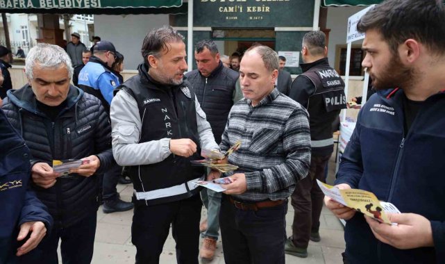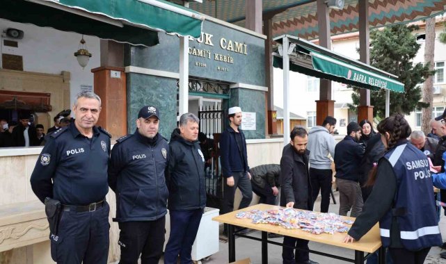 Cuma namazı sonrası ise cami çıkışında kurulan stantta vatandaşlara yönelik bilgilendirme çalışması yapıldı. Bafra Toplum Destekli Polislik Büro Amirliği ile Narkotik Suçlarla Mücadele Şube Müdürlüğü TUBİM personeli tarafından yürütülen çalışmada, madde bağımlılığıyla mücadele kapsamında broşürler dağıtıldı, vatandaşlara lokum ikram edildi.