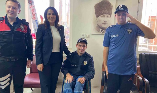 Didim'de ikamet eden yüzde 80 fiziksel ve zihinsel engelli Okan Akay ile yüzde 70 zihinsel engelli Cem Eren Özçakmak için özel olarak Didim İlçe Emniyet Müdürlüğü Altınkum Polis Karakolu'nda düzenlenen programda duygu dolu anlar yaşandı. Daha önceki yıllarda da polislik deneyimi yaşatılan Okan Akay'ın bu yıl rütbesi yükseltildi. Polisliğe ilk adımını atan Cem Eren Özçakmak'a ise özel olarak polis üniforması giydirildi.