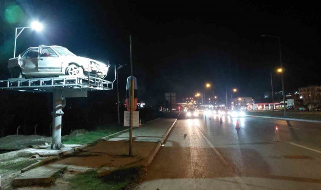 Samsun'da trafik polisleri, kaza yaparak hurdaya dönen aracı şehir girişinde oluşturdukları platformda sergileyerek sürücülere hız sınırına karşı ibretlik uyarıda bulundu.