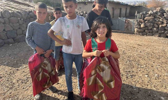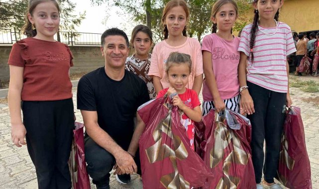 Polis memuru Mustafa Şahin, köyde okuyan çocukları unutmadı