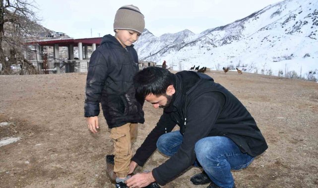 Ankara'da görev yapan polis memuru Mustafa Şahin, Şırnak'ın Beytüşşebap ve Uludere ilçelerinde 300 çocuğa bot ve mont yardımında bulundu.