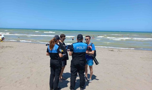 Samsun Emniyet Müdürlüğü Toplum Destekli Polislik Şube Müdürlüğü ekipleri, yaz aylarında artış gösteren suda boğulma vakalarına karşı vatandaşları sahillerde birebir bilgilendiriyor. "Tedbir elimde, hayatım güvende" sloganıyla yürütülen farkındalık çalışmasında, denize giren vatandaşlara boğulma risklerine karşı alınması gereken önlemler anlatılıyor.