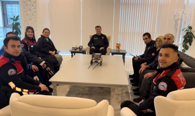 Polis sevdalısı engelli genç üniforma ile devriye görevine katıldı