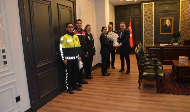 Ziyaret kapsamında İlçe Emniyet Müdürü Burak Lehimer, hafta boyunca gerçekleştirilecek etkinlikler hakkında Kaymakam Odabaş'a bilgi vererek, nazik kabullerinden dolayı teşekkürlerini iletti.İlçemizde vatandaşlarımızın güvenliğini sağlamak için gece gündüz demeden görev yapan polis teşkilatının bu anlamlı gününü kutlayan heyet, günün anısına Kaymakam Odabaş'a çiçek takdiminde bulundu.