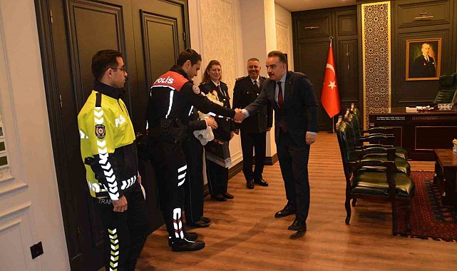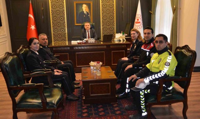 Türk Polis Teşkilatı'nın kuruluşunun 181. yıl dönümü ve 10 Nisan Polis Haftası münasebetiyle, Edremit İlçe Emniyet Müdürü Burak Lehimer ve beraberindeki emniyet mensupları, Edremit Kaymakamı Ahmet Odabaş'ı makamında ziyaret etti.