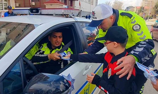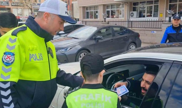 Polis üniforması giyen özel öğrenciler sürücülere trafik kurallarını hatırlattı