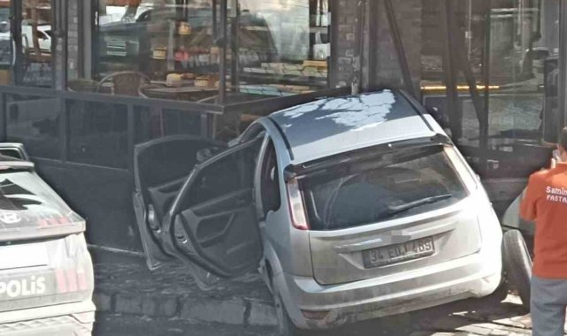 Polis uygulamasından kaçan araç pastaneye daldı, içinden 50 bin dolar ve silah çıktı