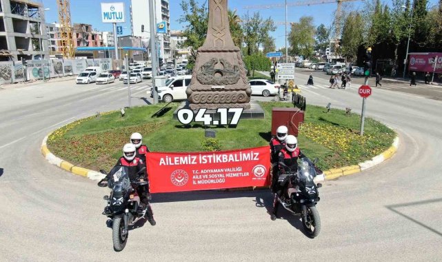 Adıyaman'da, Türk Polis Teşkilatının 180. yılı kutlamaları kapsamında motorize ekipler, Aile Yılı temalı pankart açtı.