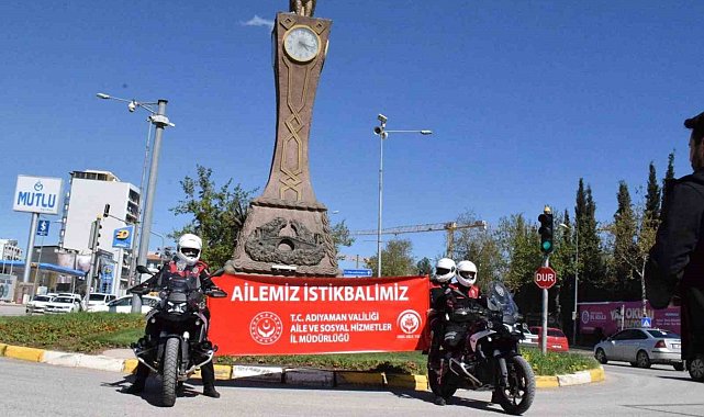 Adıyaman'da, Türk Polis Teşkilatının 180. yılı kutlamaları kapsamında motorize ekipler, Aile Yılı temalı pankart açtı.