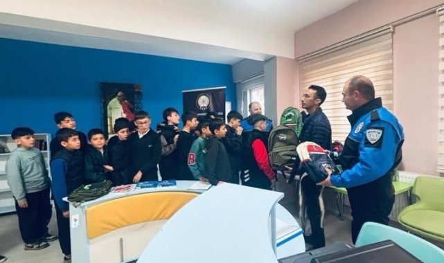 Polisten 50 öğrenciye kurs malzemesi yardımı
