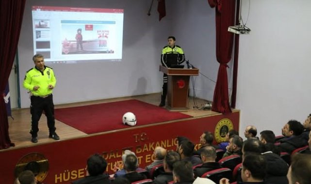 Çalışmalar kapsamında; Erzurum Trafik Tescil ve Denetleme Şube Müdürlüğü personelleri tarafından Hüseyin Turgut Eğitim Merkezi Müdürlüğünde Ceza İnfaz Koruma Amir ve Memuru toplam 150 kişiye trafik güvenliğinin iyileştirilmesi ve güvenli motosiklet kullanımı konularında seminer verildi.
