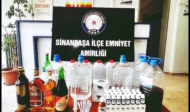 Edinilen bilgilere göre, İl Emniyet Müdürlüğüne bağlı ekipler aldıkları bir ihbar üzerine Sinanpaşa ilçesinde 4 adrese baskın yapılarak arama yapıldı. Yapılan aramalarda 11 litre bandrolsüz kaçak alkol,
