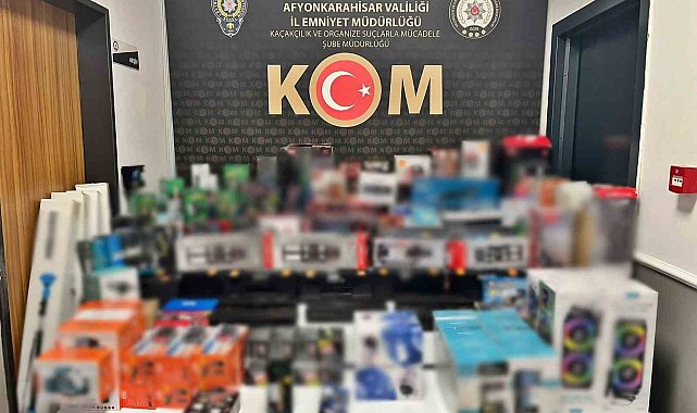 Afyonkarahisar'da polis tarafından bir iş yeri ve eve yapılan baskında 200'e yakın kaçak elektronik ürün ele geçirildi.