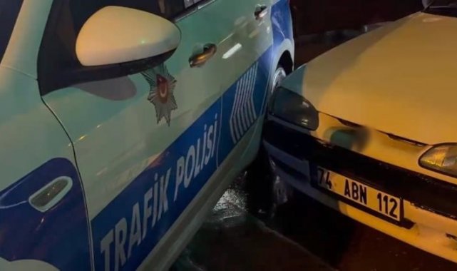 Bartın'da polisin "dur" ihtarına uymayan sürücü, polis aracına çarparak durdu. Kazada yaralanan olmazken sürücünün ehliyetsiz ve alkollü olduğu ortaya çıktı