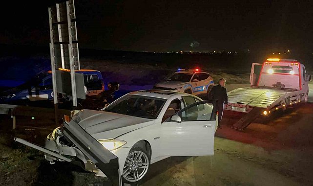Gece saatlerinde ilçe merkezindeki ana arterlerde devriye gezen polis ekipleri, seyir halindeki bir lüks otomobile dur ihtarında bulundu. Sürücünün ikazlara uymaması üzerine kovalamaca yaşandı. Hatip Mahallesi Mimar Sinan Caddesi'ne giren (Sarılar yolu) A.A. idaresindeki lüks otomobil, çevre yolu dönel kavşağında bariyerlere çarparak kaza yaptı. Sürücü A.A., bariyerlere saplanan araçtan yara almadan çıktı.