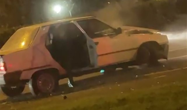 Öte yandan, sürücünün polisten kaçmaya çalıştığı ve kaza yaptığı anlar, arkasında seyreden başka bir aracın sürücüsü tarafından cep telefonu kamerasıyla anbean kaydedildi. Görüntülerde polisten kaçan aracın kaldırıma çıktığı ve ardından kaza yaparak durduğu anlar yer aldı.