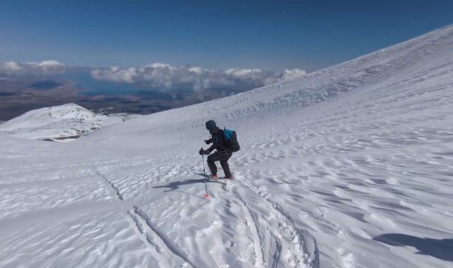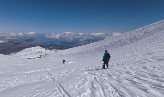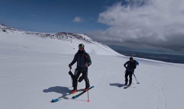 Polonyalı dağcılar Süphan Dağı'ndan kayakla indi