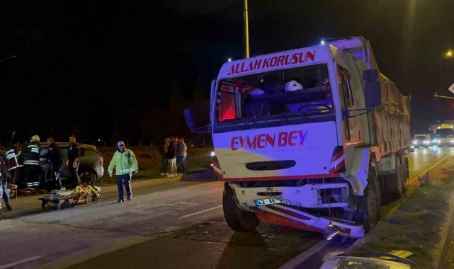 Porselen hammaddesi yüklü kamyon otomobille çarpıştı: 4 yaralı