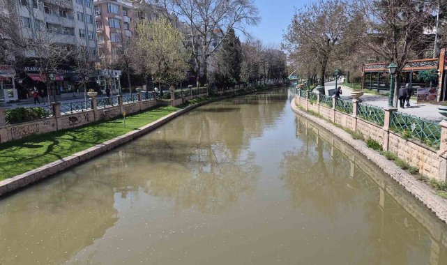 Eskişehir'de yağış sonrası kahverengi tonuna bürünen Porsuk Çayı ilginç görüntü oluşturdu.