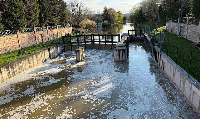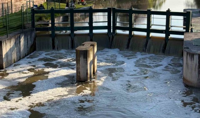 Eskişehir'de Porsuk Çayı'nın yüzeyinde yağmur sonrası oluştuğu tahmin edilen yoğun beyaz köpük tabakalar dikkat çekti.