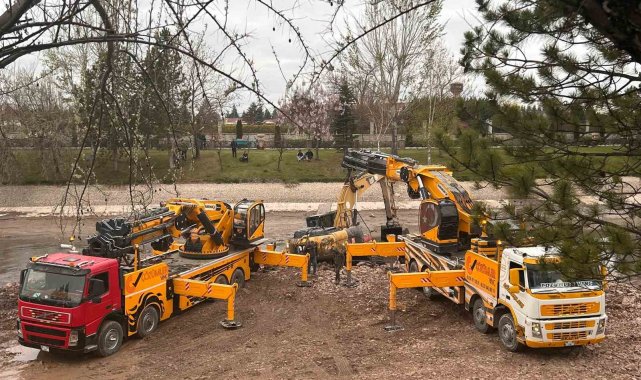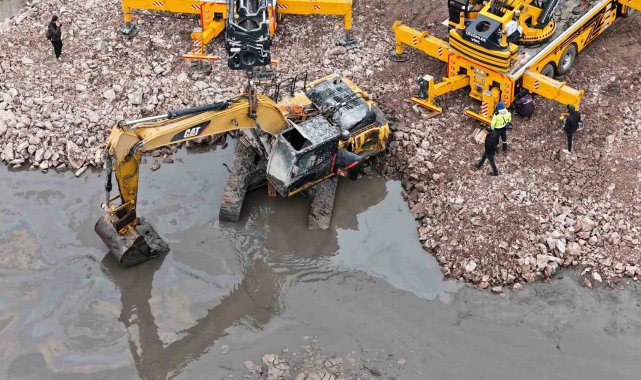 Eskişehir'de geçtiğimiz Pazar günü Porsuk Çayı'nın Sümer Mahallesi'nden geçen 9 buçuk kilometrelik kısımda dip temizliği yaptığı esnada 2 ekskavatörden biri çamur ve balçık içinde batmış, operatörün hamleleri ile iş makinası iyice gömülmüştü. Ekiplerin yaklaşık 2 gündür verdiği uğraşlar sonuç getirdi. Balçık ve çamurla kaplı alana taş ve toprak serilerek daha sıkı bir zemin elde edildi. Bu zeminin üzerine 2 adet vinç getirildi. 30 tonluk ekskavatör, her biri 95 ton yük kaldırma kapasitesine sahip 2 vince bağlanarak battığı yerden çıkarıldı. Vinçlerle yapılan kurtarma operasyonu dron ile havadan görüntülendi.