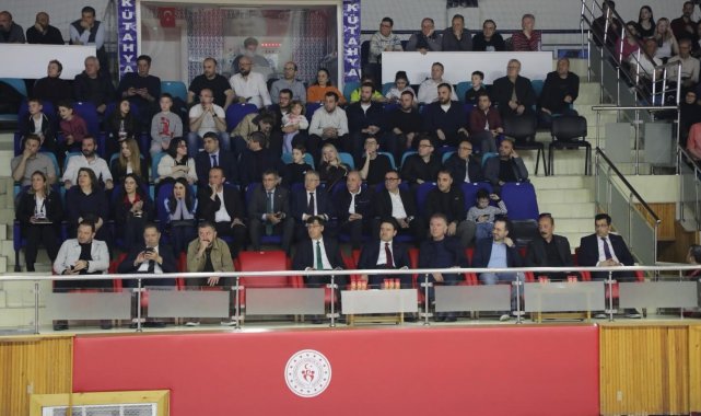 Kütahya Valisi Musa Işın ve Belediye Başkanı Eyüp Kahveci, Kütahya Belediyespor Basketbol Takımı'nın play-off çeyrek final mücadelesini tribünden takip etti.
