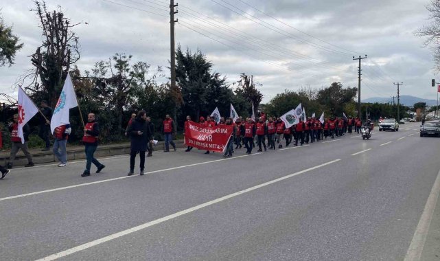 Bursa'da Birleşik Metal-İş Sendikası üyesi Prysmian fabrikası işçileri, MESS Grup Toplu İş Sözleşmesi (TİS) sürecine ilişkin alınan eylem kararları kapsamında Mudanya'da yürüyüş ve basın açıklaması gerçekleştirdi.