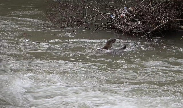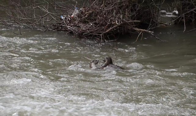 Pülümür Çayı'nda su samurlarının oyunu kamerada