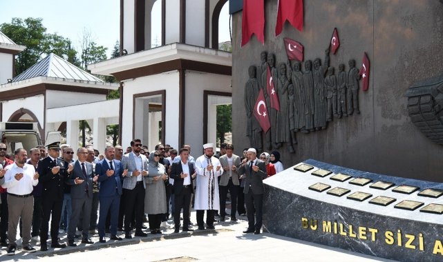 Başkan Ertuğrul Çetin ve protokol, programa katılan vatandaşlarla birlikte saygı duruşunda bulunup İstiklal Marşı'nı okudu. Kur'an-ı Kerim tilavetinin ardından şehitler için dua edildi.