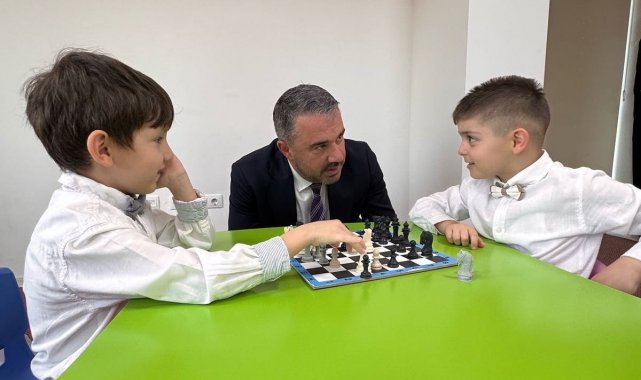 Nezaket Kreş Okulunda gerçekleştirilen Geleneksel Satranç Turnuvasına gelerek çocukları yalnız bırakmayan Belediye Başkanı Ertuğrul Çetin, miniklerin müsabakalar esnasında birbirleri ile kıyasıya yarışarak, akıl dolu hamlelerle oyunda kendilerini öne taşıyan hamleleri dikkatlice takip etti.