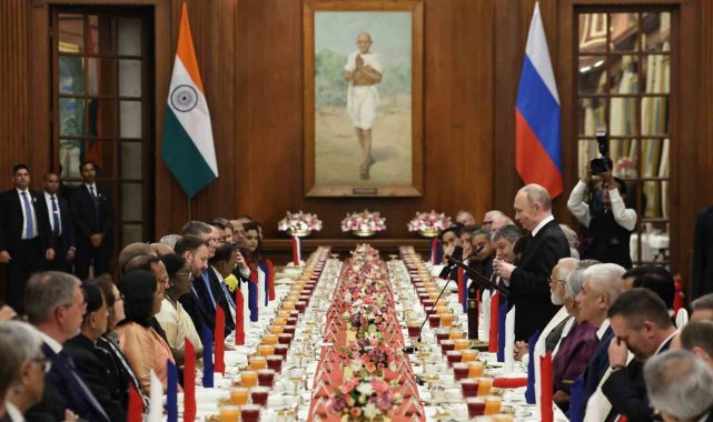 Putin, Hindistan'daki ziyareti kapsamında dün havalimanında Murmu ve Modi tarafından karşılanmasının ardından Mahatma Gandhi Anıtını ziyaret ederek anıta çelenk bırakmış, daha sonra da Haydarabad Sarayı'nda Modi ile bir araya gelmişti. İki lider arasındaki görüşmede bölgesel ve küresel gelişmelerin yanı sıra ülkeler arasındaki ekonomik ve stratejik ortaklığa ilişkin başlıklar da ele alınmış, Rusya'nın Ukrayna'daki savaşta barışın sağlanması için ABD ile yürütülen görüşmelerin ayrıntılarına değinilmişti.