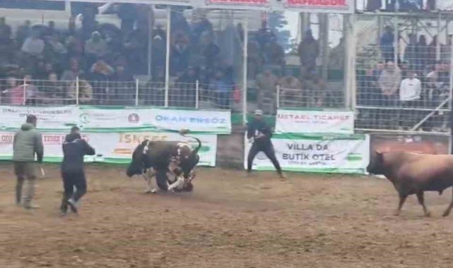 Rakibinden kaçan boğa, bakıcısını boynuzla yere serdi
