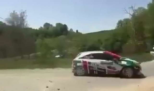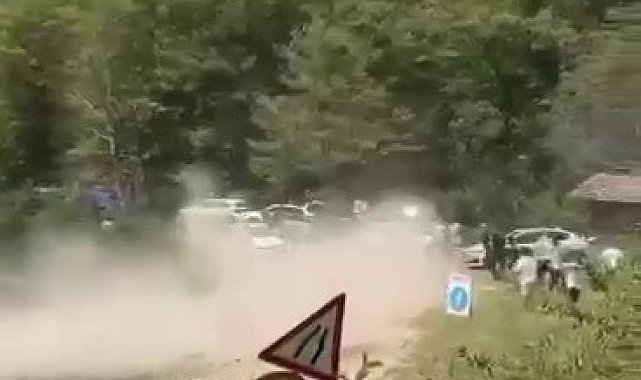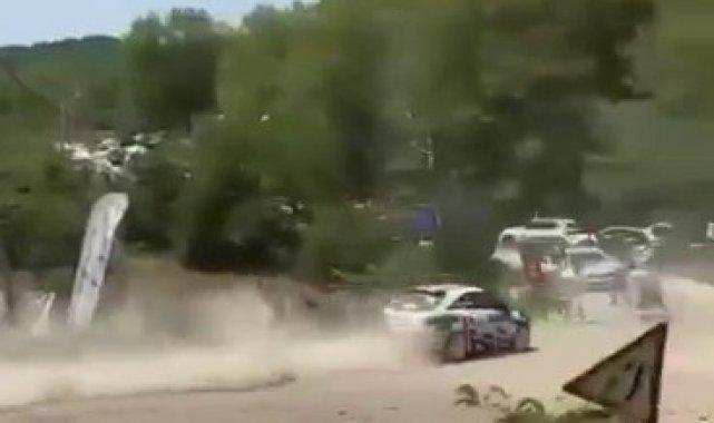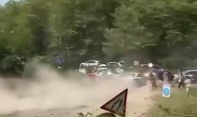 Ralli yarışında korku dolu anlar: Yarış aracı seyircilerin bulunduğıu bölgeye savruldu