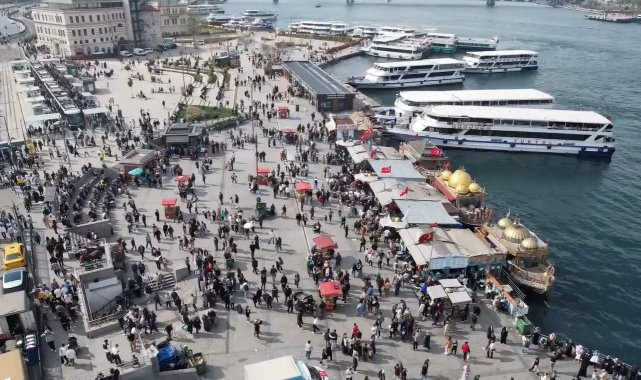 Ramazan Bayramı'nda güneşli havayı fırsat bilen yerli ve yabancı turistler, Eminönü'ne akın etti. Havanın güzel olmasıyla park, vapur iskeleleri ve meydanlar adeta doldu taştı. Öte yandan tarihi semtte yaşanan yoğunluk, havadan görüntülendi.