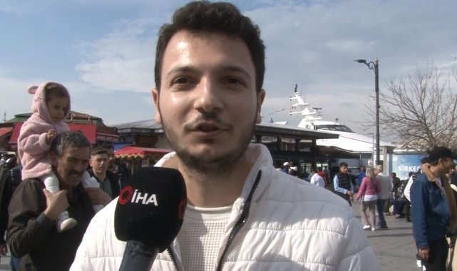 Bayramda üniversite arkadaşıyla gezdiğini belirten Zikri Acıgöz ise "Tadını çıkarıyoruz İstanbul'un. Güzel geçiyor ama kalabalık. Böyle güzel geçiyor. Normal zamandan daha kalabalık. Biz önce bir karşıya geçtik Kadıköy tarafına. Oradan da Eminönü tarafına geldik, buraları bir gezelim dedik. Buralar daha kalabalık karşıdan ama güzel geçiyor" dedi.