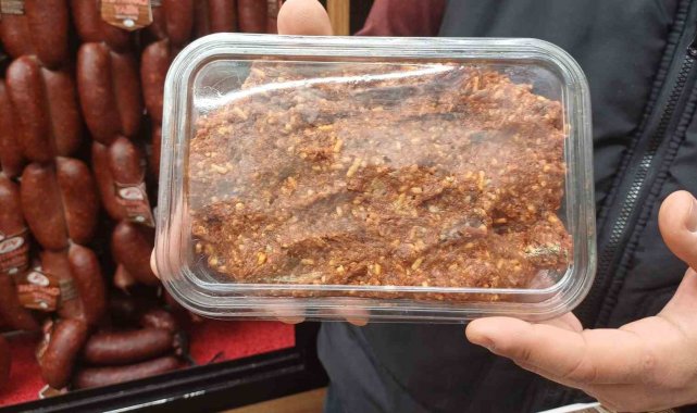 Yarım kilosunun 400 TL'den alıcı bulduğunu belirten Güzel, sucuk içinin nasıl yapıldığına değinerek, "Sucuk içi için kullandığımız kıyma orta yağlı ya da yağlı kıyma olması lazım. Yağsız kıymadan sucuk içi olmaz. Sert düşer yumuşaklık olmaz. Güvendiğimiz kasaplardan orta yağlı kıymayı alıyoruz. Daha sonra kıymanın içeresine sucuk baharatı değimiz bir karışım var. 8-9 çeşit baharattan oluştur, onlarla harmanlıyoruz. 1 gün yoğurup, 1 gün dinlendiriyoruz ve 2 günde oluyor. Şuanda yarım kiloluk paketler haline 400 TL'ye satıyoruz. Yani kilogramı 800 TL'ye tekabül ediyor. Şuanda alımlar başladı" şeklinde konuştu.