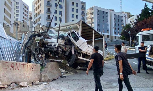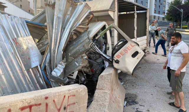 Rampadan inen kamyonet bariyerlere çarptı: 1 yaralı